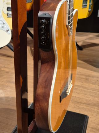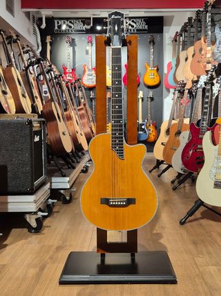 Guitarra acústica de caja estrecha Shadow JMS CA44 Tapa de cedro. Aros, mástil y aros de caoba. Cejuela de hueso. Producto nuevo de tienda que ha estado en exposición. No es segunda mano. Actualización: tiene un pequeño desconchón en la esquina del aros con la tapa. Y un pequeño roce en el aro. Se ve en fotos.
