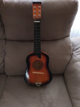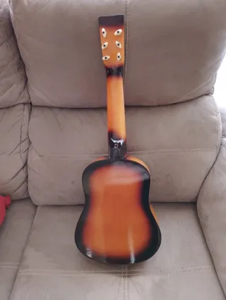 Guitarra acústica de tamaño reducido, ideal para iniciarse en la música. - Cuerpo de madera con acabado degradado. - Mástil de madera con trastes marcados. - Clavijero con 3 afinadores, faltan 3. - Puente con selleta.