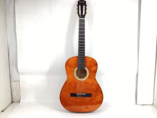Guitarra acústica de tamaño reducido, ideal para niños que se inician en la música. Viene con funda. - Cuerpo de madera clara. - Cuerdas de nylon.