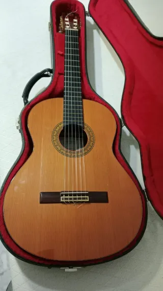 No negociable. Guitarra clásica Alhambra 5P n°273 año 1979. Fabricada en Muro de Alcoy. Suena increíble. Tiene la madera de la caja desgastada. No tiene grietas ni aberturas. Caja robusta, mástil de Samanguila con diapasón de ébano y el Palosanto de India para aros y fondo. Tapa de cedro. Clavijeros plateados de calidad superior. Acabado en brillo. Incluyo 3 cuerdas de repuesto de D'Addario J2701 y la funda negra (tiene un asa suelta, como se ve en la última foto, pero se puede coser una vez adaptada a la altura del comprador).