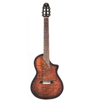 - Tapa de pino abeto maciza de calidad extra - Aros y fondo de ciprés laminado - Diapason de Ebano - Golpeador transparente - Fishman