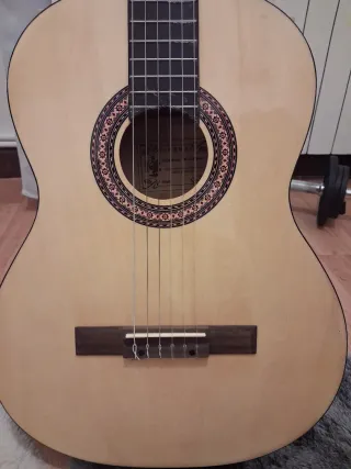 Guitarra clásica admira bien cuidada, que mantiene muy bien la afinación. Tiene marcas de uso, como se ve en la penúltima foto, que no afectan al sonido. La vendo, ya que no la uso. Es una buena guitarra. He rebajado el precio de venta en 10€, porque no tengo funda.
