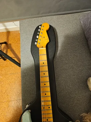 Primer propietario. Impecable, sin marcas ni rasguños. Mástil recto como una flecha, acción perfecta. Las pastillas Custom '58 son réplicas exactas de las de J Mascis… únicas y suenan increíble. Incluye: • Funda Deluxe + embalaje original Fender • Golpeador vintage green (instalado) + chrome mirror original • Cuerdas nuevas + correa de regalo Mástil y hardware Road Worn. Puente top-loader. Acabado Bottle Rocket Blue Flake. Una guitarra muy especial. Si pagas el precio que pido, te la llevo a Barcelona o alrededores.