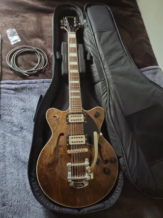Vendo Gretsch G2655T Streamliner Center Block Jr. Double-Cut con Bigsby, en estado impecable. Guitarra muy cómoda por el formato Jr. , con el plus del Bigsby para vibratos suaves tipo vintage. Ideal para rock, blues, indie, pop y jazz, con un sonido con cuerpo y buena pegada gracias al center block (más control de acoples que una semi-hollow tradicional). Estado: impoluta, sin golpes ni marcas, cuidada al máximo con las pegatinas todavía sin quitar. Sonido: cálido y definido, con muy buena respuesta tanto en limpio como con overdrive