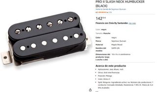 Pastilla humbucker Seymour Duncan Pro II Slash para mástil. - Color: Negro - Material: Maple Wood - Modelo: SAPH-2N - Imán: Alnico II - Aplicaciones: Jazz, Blues, rock - Otros: Anti interferencias