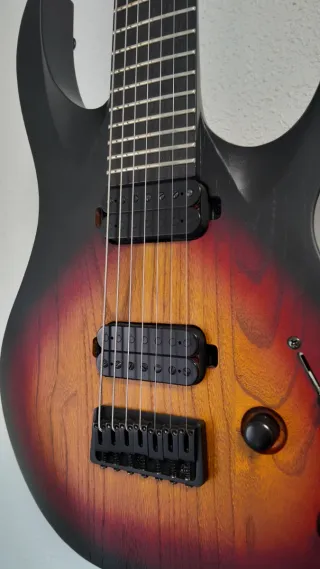 Guitarra eléctrica Solar de 7 cuerdas con un acabado acojonante que va del negro al sunburst. Está ajustada en drop G con cuerdas 11-64. Las pastillas me han sorprendido mucho y es un gran instrumento, la vendo porque me sobran 7 cuerdas en casa. Si tienes dudas no te quedes con ellas, respondo rápido! Hago envíos solo a través de Wallapop. No leer. Jackson ltd esp prs ibanez tokai gibson dean bc rich skervesen harley benton marshall peavey