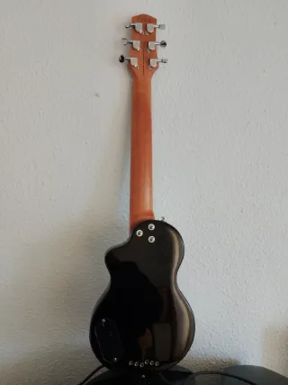 Guitarra eléctrica sin apenas uso funciona con pilas lleva un pie para sujetar el micrófono. Sólo venta en persona.