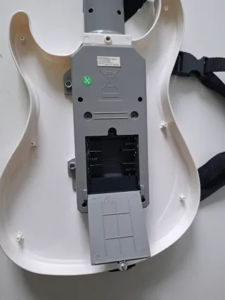 Guitarra de juguete con luces y sonidos para niños y niñas a partir de 6 años. Compatible con Ipad. - Diseño inspirado en guitarras eléctricas. - Botones de colores en el mástil. - Efectos de luz y sonido - Altavoz integrado - Modo silencioso Nos lo han regalado sin tiquet de compra y ya tenemos una parecida.