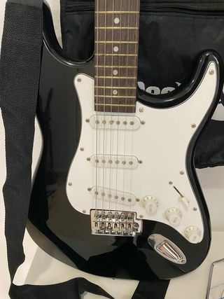 Pack Guitarra eléctrica Daytona, incluye guitarra eléctrica blanca y negra, funda para la misma, correa, púas, cables, tunner, amplificador de 15 vatios, cuerda de repuesto, etc. Pack ideal para principiantes, la he usado 2 veces. Prácticamente nueva, suena y funciona muy bien.