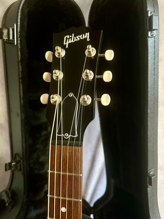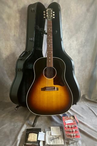 Gibson J-45 Standard electroacústica 2016, uno de los modelos acústicos más icónicos de la historia de Gibson. Graves cálidos y redondos, medios presentes y agudos suaves, perfectamente equilibrada. Equipada de fábrica con sistema L.R. Baggs Element VTC, ideal para directo y estudio, con una amplificación muy natural. Clavijas Gibson deluxe (incluyo las grover originales) Una de las acústicas más buscadas por su versatilidad y musicalidad. Recién ajustada y con cuerdas nuevas. Incluye estuche rígido y documentación.