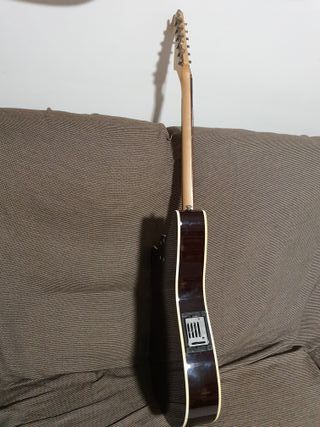 Guitarra aria elecord modelo fet stbs ,electroacústica en buen estado muy cómoda de tocar y buen sonido,lleva una reparación en el aro tapa de un golpe como se ve en la foto,no influye para nada en el sonido, calidad de sonido también amplificada .