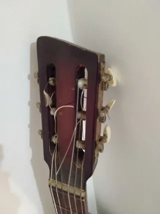 Guitarra española+ funda + pua. Le falta un poco de pintura en alguna parte del canto. Hay foto. La guitarra por lo demás está perfecta.