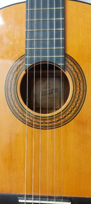 Guitarra clásica española Admira Fiesta tamaño 3/4, ideal para jóvenes músicos. - Modelo: Fiesta - Tamaño: 3/4 Junior - Marca: Admira - Tipo: Clásica española Incluye funda algo deteriorada.