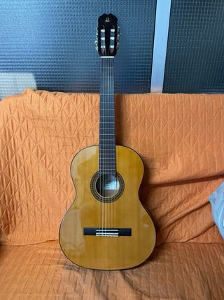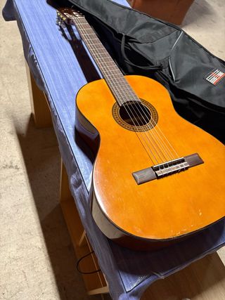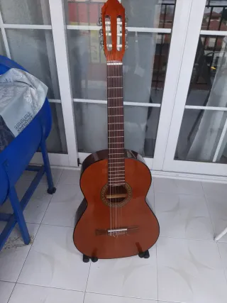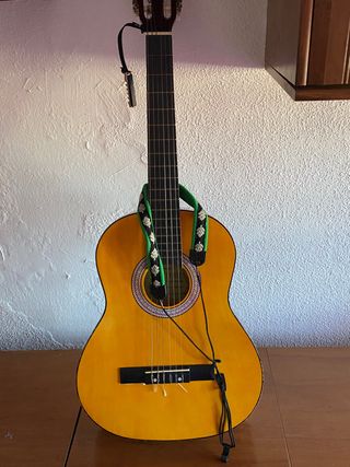 Guitarra española en perfecto estado, ideal para iniciarse o para músicos experimentados. Incluye accesorios. - Cuerpo de madera clara. - Diapasón oscuro con trastes. - Cuerdas de nylon. - Soporte para guitarra. - Funda. - 2 afinadores. - Celdilla. Todo lo que se ve en las fotos.
