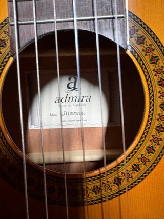 Guitarra española Admira modelo Juanita, fabricada en España. Incluye funda. - Tapa de abeto. - Aros y fondo de sapelly. - Mástil de caoba. - Diapasón de palisandro.