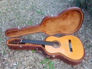 Guitarra flamenca de Valeriano Bernal de ciprés, modelo Duende (alta de gama), año 2002. Aros y fondo ciprés español macizo y tapa de pino abeto alemán macizo. En perfecto estado con las marcas típicas de años y una grieta ya reparada en fondo, no llegó a rajar por dentro, sólo se agrietó por fuera. Ya sellada y reparada por luthier. Clavijero mecánico nuevo, valorado en 250€. No ofertas absurdas. Su valor de fabrica eran 5000€, sólo por las pequeñas marcas y la reparación bajo hasta los 2000€. Se entrega en su estuche original también de Valeriano. Se puede ver y probar en Badajoz sin compromiso ninguno.