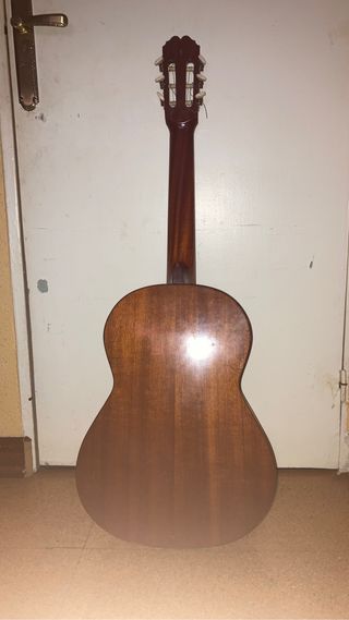 Guitarra clásica / española 3/4 ideal para iniciarse. Es un poco más pequeña, lo que facilita el aprendizaje para llegar mejor a las cuerdas. Está en buenas condiciones, algunas marcas esteticas que no afectan al sonido que se pueden apreciar en las imágenes