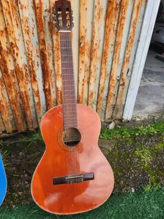 Guitarra española clásica de cuerdas de nylon. Ideal para iniciarse en la música. " Ojo" ahí que reparar alguna cuerda y pequeños toques del uso. cada una - Cuerpo de madera. - Mástil de madera. - Diapasón con trastes.