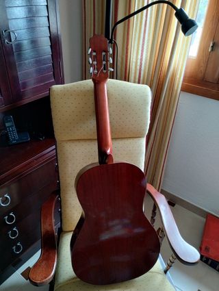 Guitarra clásica de madera, en buen estado. Ideal para principiantes o aficionados. - Cuerpo de madera. - Mástil de madera. - Clavijas en buen estado.