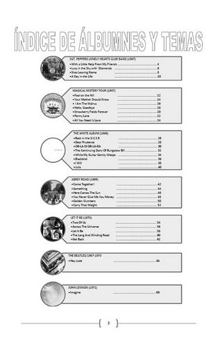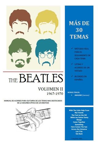 Manual de acordes para guitarra de los temas más destacados de la segunda época de los Beatles (1967-1970). 31 TEMAS PRINCIPALES DE SU SEGUNDA ÉPOCA (1967-1970). CLASIFICADO POR ALBUMNES. Bonus Track: Imagine (John Lennon) MÉTODO FACIL PARA EL SEGUIMIENTO DE CADA TEMA (ver fotos): Acordes en español. Nombre de la Nota y Acordes sobrepuestos en las letras de los temas, para una rápida identificación. Cada tema ocupa 2 hojas, par e impar, para facilitar su lectura. Formato: Se presenta en fotocopias de alta calidad en cuaderno de gusanillo y cubierta de acetato. 67 paginas en BLANCO Y NEGRO (EN COLOR 25€) Tamaño: 30 x 21.5 cm