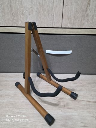 guitarra con su propio soporte y funda .ideal para tener tu instrumento a mano y bien expuesto. Su diseño es clásico y funcional. - Material: Madera. - Color: Natural. - Diseño plegable para fácil almacenamiento.
