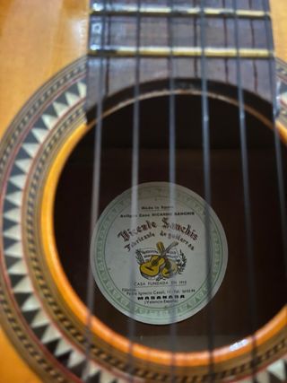 ATENCIÓN COLECCIONISTAS!95cm,SUENA BRUTAL, SONIDO CLARO,CON ARMÓNICOS Y POTENTE Y RANCIA.Maravillosa y preciosa guitarra romántica de palillos.Golpeador y puente de palisandro!tapa de pino y cuerpo de nogal español de casi un siglo de antigüedad!Altura traste 12: 2,5mm!En perfecto estado de conservación. Con las señales del paso del tiempo!!! La historia que no tendrá!!!Boca de mosaico.!!antonio de torres, santos hernández, marcelo barbero, domingo esteso, arcangel fernández, miguel rodríguez, manuel reyes, fleta Valeriano Bernal barba Alhambra Bross Juan Padilla Romero Vargas Heredia antigua flamenca Sanchís Carpio Paco de Lucia