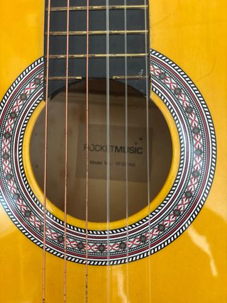 Guitarra española de la marca Juguettos, ideal para iniciarse en la música. - Diseño clásico de guitarra española. - Cuerdas auténticas. - Afinable.