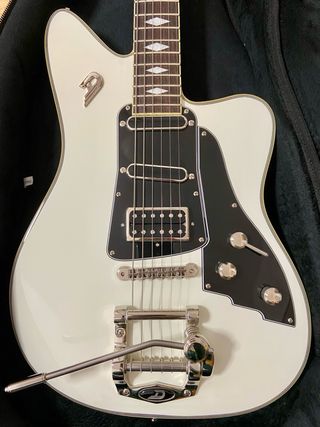 Oferta 2026 🥳🥳🥳 !!! Guitarra eléctrica en venta. Marca: Duesenberg Modelo: Paloma WH Color: Blanco / Negro Cuerpo: Alder macizo Mástil: Arce Diapasón: Rosewood Trémolo: Duesenberg Radiator Electrónica: * Pastilla Grand Vintage Humbucker * Pastilla Pearlito de bobina simple * Pastilla Alnico-Blade de bobina simple Año fabricación: 2023 Estuche: Funda acolchada Duesenberg Cualquier consulta, no dudes en preguntarme. Acepto cambio por Fender Strato o Telecaster, o por Gibson LP Standard. Alguna Martin o Gibson acústica tambien me encaja. Muchas gracias.