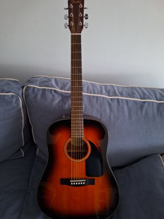 Guitarra acústica Fender con acabado Sunburst. Ideal para músicos. - Cuerpo de madera. - Mástil de madera. - Seis cuerdas.