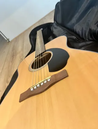 Guitarra acústica Fender Squier con acabado natural. - Cuerpo de madera. - Mástil de madera. - Diapasón con marcadores de posición.
