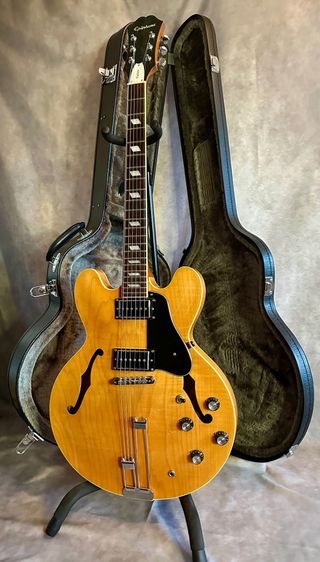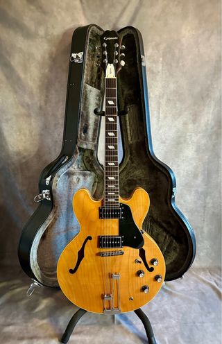 Una de las Riviera más buscadas por su estética clásica y por el carácter sonoro que marcó una época del indie rock. Cuerpo semi-hollow de arce con bloque central. Diseño elegante y atemporal. Mástil de caoba Slim Taper perfil 60s con diapasón de palo rosa oscuro, rápido y cómodo. Trastes medium jumbo. Equipada de serie con pastillas Gibson P-94, más cuerpo y empuje. Ideal para riffs, acordes definidos y overdrive con personalidad, en la línea The Strokes. afinadores Grover y tailpiece Frequensator. Fender Gibson PRS Gretsch Stratocaster Telecaster Les Paul SG 335 Jazzmaster Jaguar Mustang rickenbacker sheraton dot casino