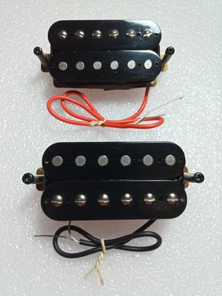 Pastillas de una Harley Benton TE-20HH SBK. Son dos humbuckers para mástil y puente para guitarra tipo Fender Telecaster. En buen estado, casi nuevas. Conservan toda la longitud de los cables, no se han cortado. Incluyen tornillos y muelles para montaje en pickguard.