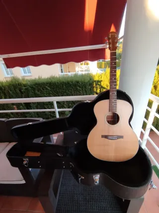 Rebajada: Eastman AC120 Dreadnought nueva. Es un modelo ya descatalogado, ideal para tocar música country, folk o blues. Es una guitarra ligera, cómoda, con un tono cálido y muy buena proyeción. La tapa es de abeto macizo y los aros y fondo de sapeli. Está acabado en 'nitro', mate natural muy fino, lo cual tiene un 'craquelado' en algunos sitios que no afecta la comodidad ni sonido de la guitarra. Viene con su estuche duro a medida y documentación. Más detalles en las últimas fotos. No hago envios, prefiero tratar en persona, así pueden probarla bien. Saludos. 👋🎸 Guitarra Martin Taylor Guild Recording King Fender Gibson Yamaha Cor
