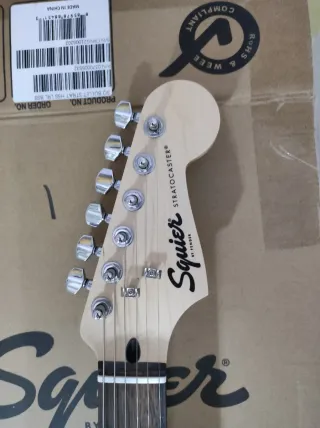 Guitarra eléctrica Squier by Fender con configuración HSS y diapasón LRL COMPLETAMENTE NUEVA. NO NEGOCIABLE - Color negro brillante. - Diseño clásico Stratocaster. - Pastillas HSS (humbucker y dos single-coil). - Mástil de arce y diapasón de laurel (LRL). ACCESORIOS: 1. Peana 2. Cascos 3. Afinador de pinza 4. Cuerdas 5. Mini amplificador 6. Sistema inalambrico 7. Puas En garantia, comprada el 27 de marzo de 2025.