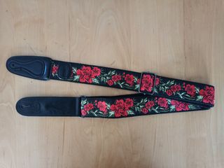 Vendo esta correa para guitarra eléctrica o bajo. Está nueva, nunca se ha usado. Es muy bonita, está hecha de tela bordada, no pintada o estampada. Incluye 2 arandelas de ajuste de goma (por 5 euros más te incluyo 2 enganches de seguridad tipo straplock). Envío con Wallapop + Inpost, no envío con Correos. bandolera fender squier gibson epiphone ibanez cort ltd esp washburn yamaha pacifica eléctrica dunlop perri's wave planet d'addario ernie ball dimarzio tonerider seymour duncan