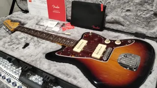 Guitarra eléctrica Fender Jazzmaster American Professional II con estuche duro Fender Deluxe Molded. - Acabado en Sunburst. - Incluye funda rígida. - Documentación y accesorios originales. El precio en tienda del conjunto es de 1.950 euros la guitarra + 170 euros estuche delixe = 2.120 euros. El estado del conjunto es como nuevo. Trastes casi al 100%. Ningun golpe ni marca. Como nuevo. Con todos sus chuches.