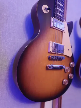 Guitarra eléctrica Gibson Les Paul Tribute 60's. - Acabado en sunburst. - Cuerpo de caoba. - Mástil de caoba. - Diapasón de palisandro. Es la edición que viene con clavijas tronical para afinación automática. Algo negociable. Tal vez podría cambiar por alguna Gibson SG o Fender Stratocaster americana No tiene funda.