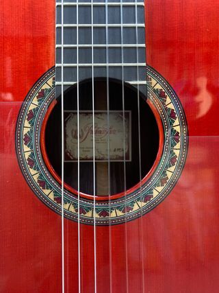 Guitarra super comoda y muy flamenca. Con tapa de abeto macizo, aros y fondo de cipres laminado.
