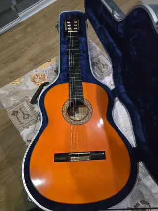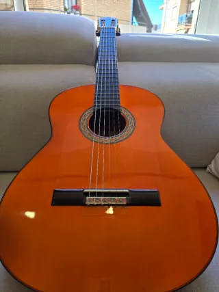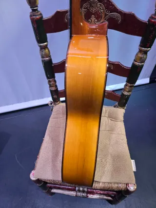 Guitarra flamenca de la marca Antonio de Toledo, modelo Tomatito. Presenta un acabado brillante y maderas de alta calidad. - Tapa de Pino abeto maciza. - Aros y fondo de palosanto de Patagonia - Mástil de cedro - Diapasón de ébano. - Incluye funda. Enviamos a toda España Wallapop O transporte urgente.