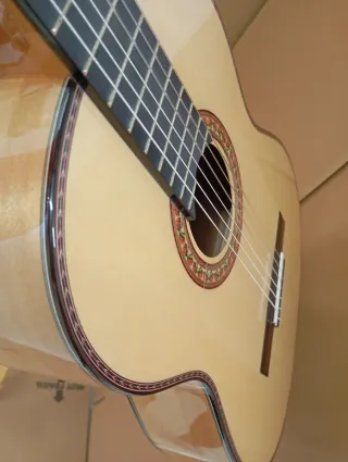 - Modelo José Rincón MF3 - Fabricada por Martínez - Nuevo diseño roseta Conde Tapa de pino abeto maciza Aros y fondo ciprés laminado Acción baja Diapason de ébano Envíos a toda España a través de transporte urgente o Wallapop