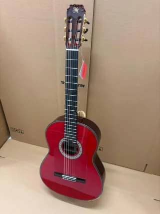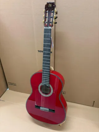 Guitarra flamenca modelo Manuela en color rojo. Construida con ciprés laminado. De “Modesto Malla” Cipres Real Español laminado Tapa de Pino abeto Aleman macizo Alma regulable (Truss rod) Huesos ajustados por luthier Enviamos directo de fabricante a través de Wallapop O transporte urgente.
