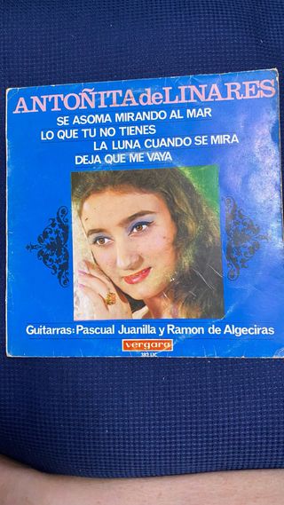 Single de vinilo de Antoñita de Linares. - Título: Se asoma mirando al mar - Lado B: Lo que tu no tienes, La luna cuando se mira, Deja que me vaya - Guitarras: Pascual Juanilla y Ramon de Algeciras - Sello discográfico: Vergara