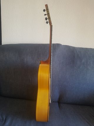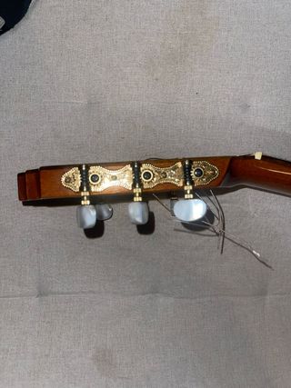 Guitarra flamenca clásica con un acabado en madera natural. Le faltan tres cuerdas - Cuerpo de madera. - Mástil de madera. - Diapasón oscuro. No realizo portes