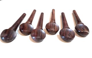 Juego de 6 palillos tradicionales, clásicos, hechos a mano por tornero artesano que aseguran una afinación perfecta, para guitarras de palillos, antiguas y modernas, para luthiers, profesionales y particulares. De madera muy dura de TAMARINDO, con ojo o sin ojo de perdiz en la palomilla y con las mismas medidas de guitarras antiguas (medidas que fabrico expresamente así). Se entregan sin agujeros para las cuerdas, pero los puedo hacer. Se puede poner punto de nácar en punta del eje, todo por el mismo precio. Whapp 656922490 fotos. Entrego en Sevilla y envío a toda España por WALLAPOP o por Correo Certificado (Gastos de envío 6,0)