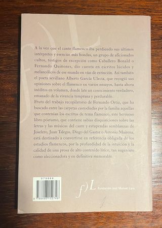 El libro "Temas e Intérpretes Flamencos" de Alberto García Ulecia trata sobre el mundo del flamenco, ofreciendo una perspectiva desde dentro a través de las voces de sus protagonistas (cantaores, bailaores, guitarristas), analizando sus sentimientos, el arte, su historia, y temas como la inseguridad, fascinación, y su relación con artistas y movimientos culturales. Estado: como nuevo. P.V.P.: 22 €. Entrega en mano en el centro de Sevilla.