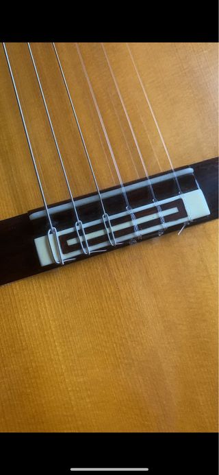 Guitarra flamenca con acabado natural.solo tiene el defecto que se ve en fotos - Cuerpo de madera. - Mástil de madera. - Cuerdas de nylon.