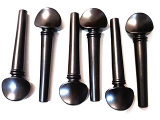 Juego de seis palillos tradicionales, clásicos, hechos a mano por tornero artesano que aseguran una afinación perfecta, para guitarras de palillos, antiguas y modernas, para luthiers, profesionales, y particulares. De madera muy dura de EBANO legitimo, con ojo o sin ojo de perdiz en la palomilla y con las medidas de guitarras antiguas (medidas que fabrico expresamente así). Se entregan sin agujeros para las cuerdas, pero los puedo hacer. SE puede poner punto de nácar en punta del eje, por el mismo precio. Whapp 656922490 fotos. Entrego en Sevilla y envío a toda España por WALLAPOP o por Correo Certificado (Gastos de envío 6,00 €) -