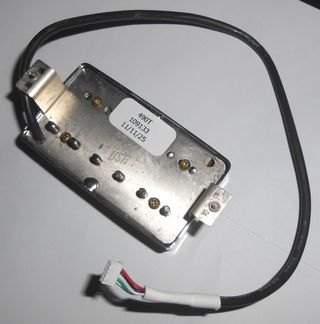 Gibson 490T "cubierta cromada" Quick connect (Conector rápido), la versión moderna de la Classic 57 pero con un ligero realce en los medios-altos, lo que le otorga una respuesta más cortante, claridad en sonidos limpios y un crunch más definido sin llegar a ser estridente. Al usar imanes de Alnico II proporciona un sustain suave y frecuencias agudas redondeadas, evitando sonidos punzantes. Se comporta de forma agresiva con distorsión, pero mantiene una articulación que la hace ideal para géneros como el Blues, Rock clásico y Hard-Rock. Prácticamente nueva, apenas 2 horas de uso, extraida de una Gibson SG Standard.