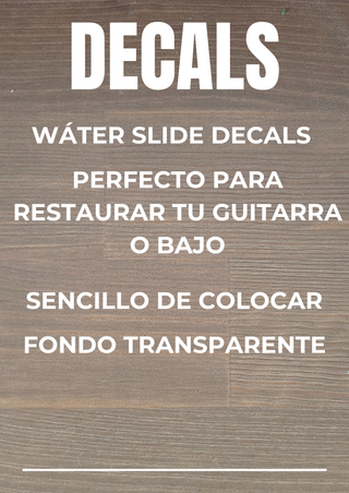 ✅Diferentes modelos para guitarra o bajo, tambien personalizados. Water slide decal. Perfecto para restaurar o personalizar tu bajo o guitarra Excelente calidad. Fácil de colocar. Fondo transparente,una vez colocado. Se adjuntan instrucciones para su instalación. 🔥eléctrica. principiante. profesional. vintage. moderna. rock. metal. blues. jazz. Stratocaster. Les Paul. Telecaster. SG. Superstrat. hollow body. semi hollow. 6 cuerdas. 7 cuerdas. 8 cuerdas. barítona. pastillas. humbucker. single coil. P90. puente. tremolo. Floyd Rose. mástil. diapasón. trastes. cejuela. clavijas. selector. Squier.