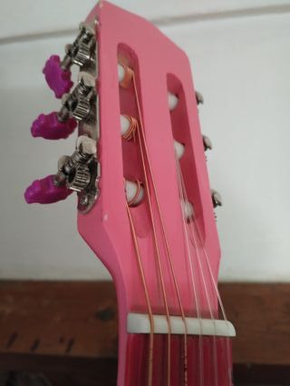Guitarra de madera de color rosa, decorada con pegatinas de Soy Luna y unicornios. - Diseño infantil y llamativo. - Ideal para iniciarse en la música.